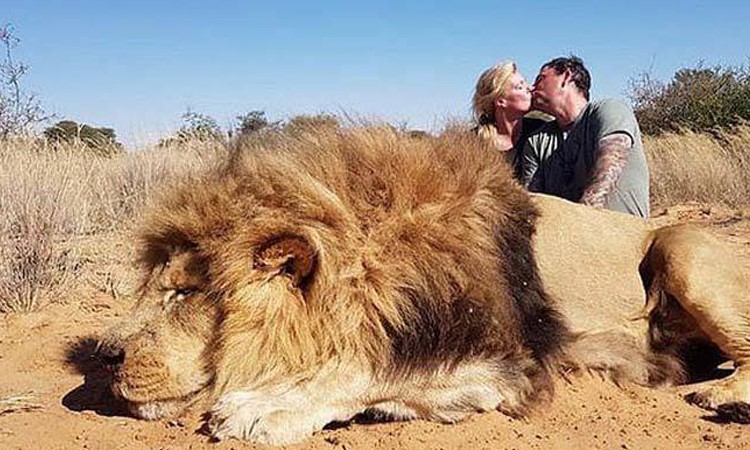 সিংহ শিকার করে তার পাশে বসে এক অপরে চুম্বন করছেন এক দম্পতি। এরপর সেই ছবি ফ্রেমে বন্দি করে পোস্ট করেছেন সামাজিক মাধ্যমে। এনিয়ে ব্যাপক সমালোচনার ঝড় চলছে সামাজিক মাধ্যমে। আন্তর্জাতিক গণমাধ্যমের খবরে বলা হয়, ড্যারেন ও ক্যারলিন কার্টার নামে কানাডিয়ান ওই দম্পতি শিকারের জন্য দক্ষিণ আফ্রিকায় গিয়েছিলেন। সেখানে তারা একটি সিংহ শিকার করেন। এরপর সেই সিংহের পাশে বসে একে অপরকে চুম্বন করেন তারা। দক্ষিণ আফ্রিকার জঙ্গলে শিকারের উদ্দেশেই গিয়েছিল ড্যারেন কার্টার ও ক্যারোলিন কার্টার। লাগিলেলা সাফারি নামে একটি দলের সঙ্গে শিকার অভিযানে যান তারা। তার পরেই গুলি করে মারা হয় বিশালাকায় সিংহটিকে। সিংহ মারার আনন্দে তার পাশে বসে পোজ দিয়ে চুম্বন করে ওই দম্পতি। এরপর থেকে ওই দম্পতির ছবি ঘিরে চলছে কড়া সমালোচনা। বন্যপ্রাণী এভাবে নির্বিচারে শিকার করায় অনেকে এর তীব্র নিন্দা জানাচ্ছেন।